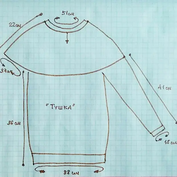 Снимаем петли рукава с держателей на спицы, при этом также поднимаем петли подрезов и ростка, начинаем вязать рукав нужной длины, делая убавления по 4 петли в каждом 6 ряду 12 раз.