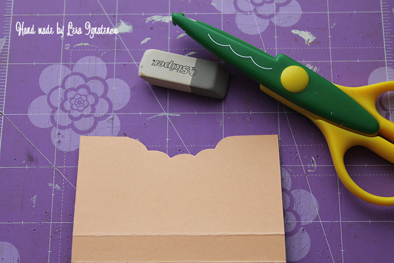 вырезаем фигурным ножницам, карандашную линию стираем.