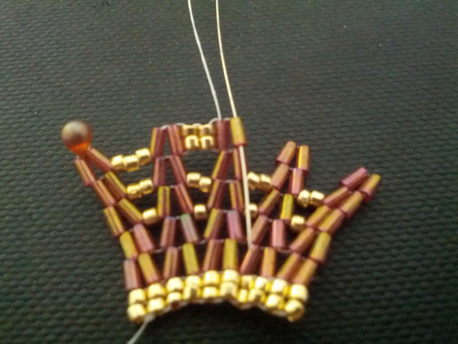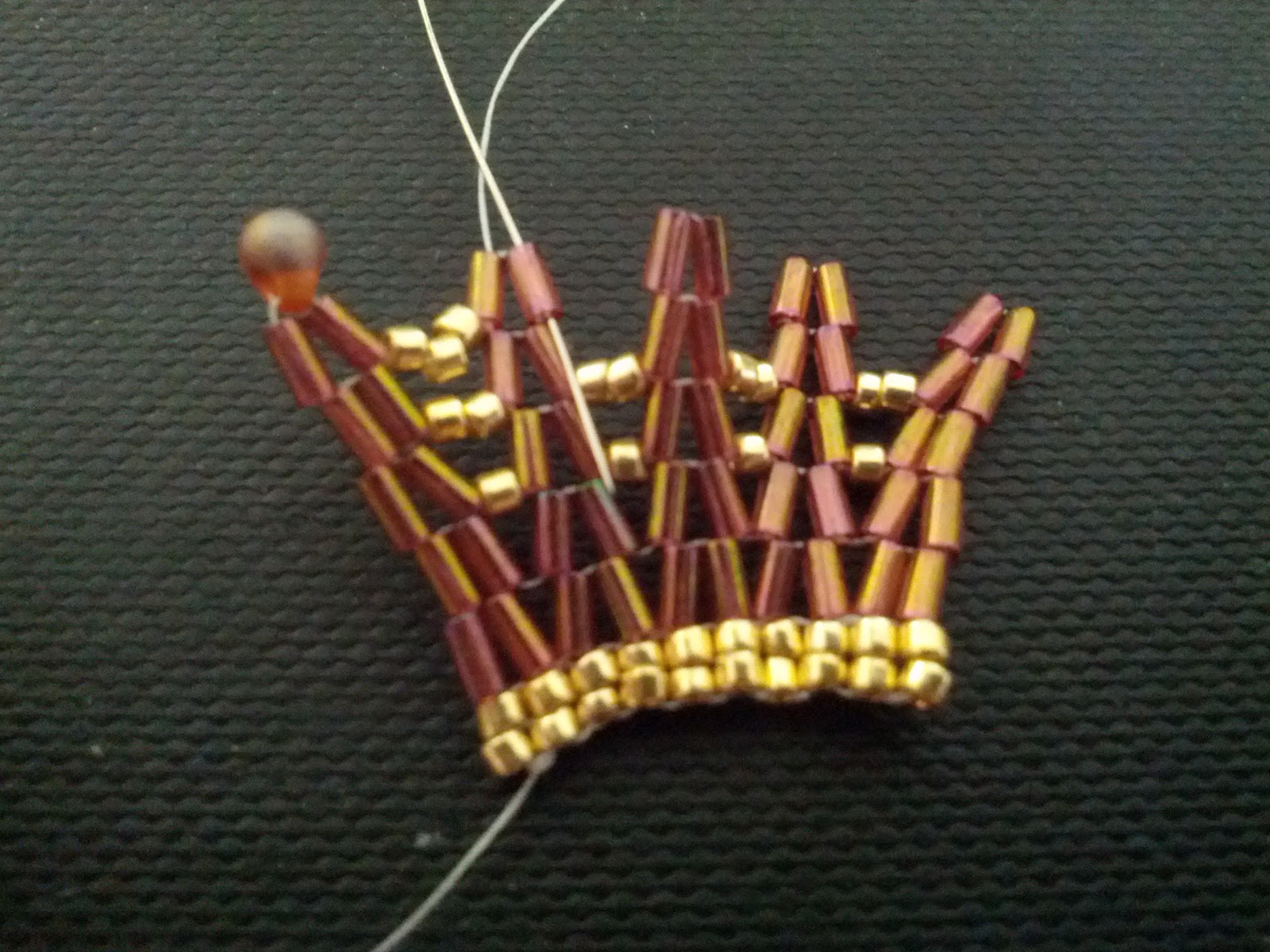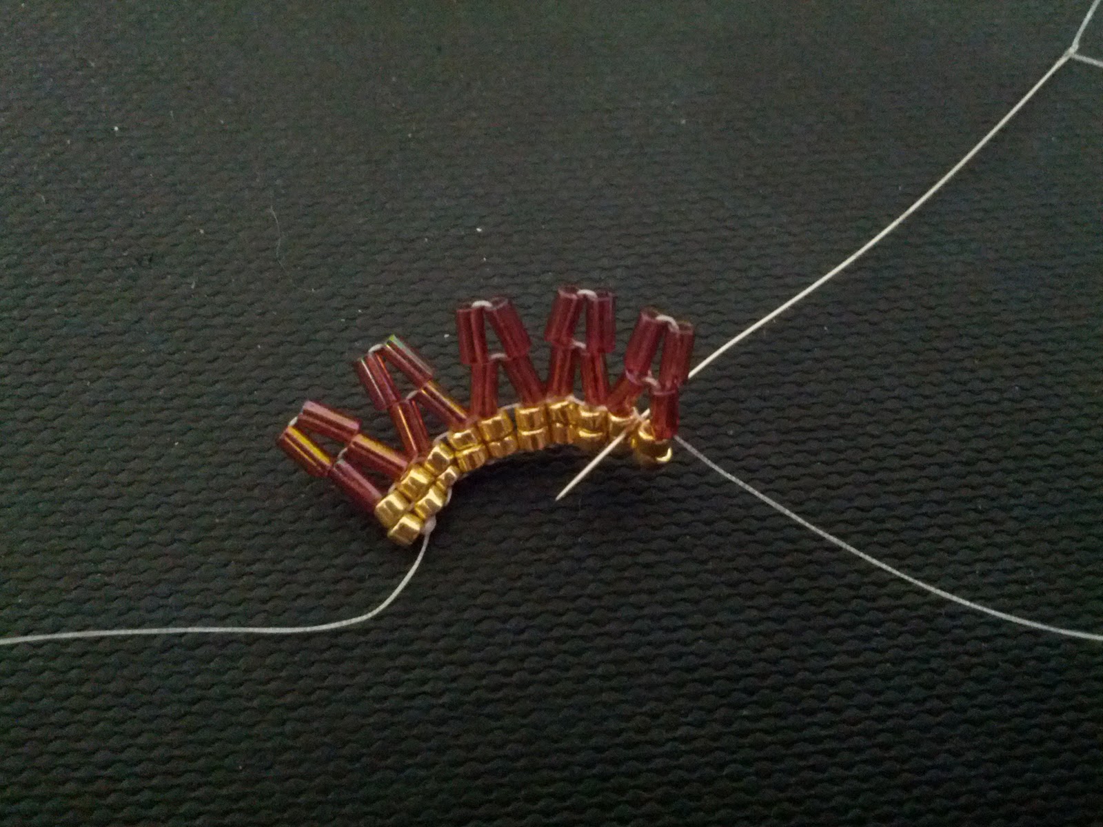 Строка бахромой из бисера (или не), спуститься через последнюю горную в строку, выполните 'поворот', а уже затем иголку через существующие бисероплетения до тех пор, пока ваш поток, выходящий из Горна, показано на рисунке.