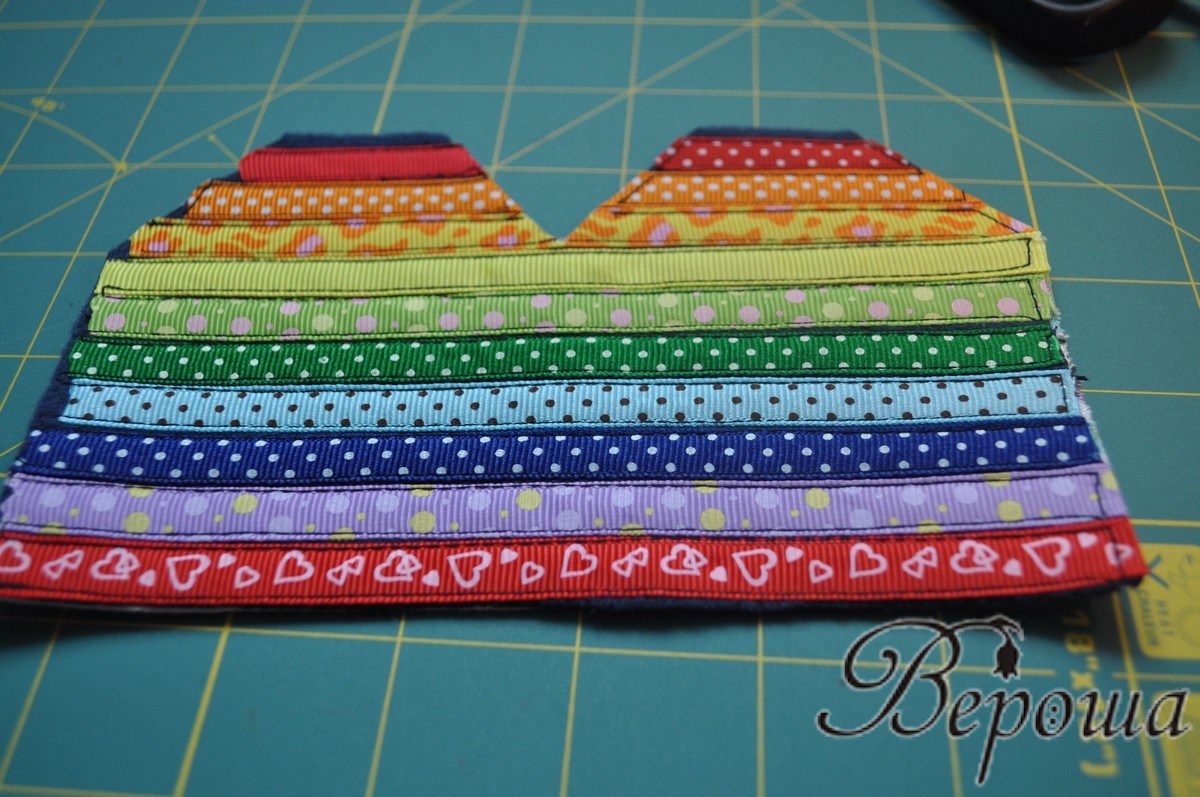 Потом я немного подкроила основу и нашила на неё репсовые ленты (но, кстати изнанка могла быть лицом, а внутрь можно и что-то другое пришить, попроще ;) ) Верхние части по 4 см длиной получились.