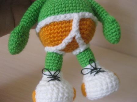 -Пряжа: я использовала пехорскую пряжу: детский каприз (зеленая, оранжевая) и детская новинка (белая), а также немного ириса голубого цвета