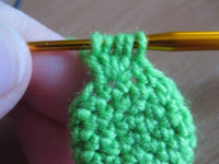 8) в одну петлю 4 ССН с одной вершиной (пальчик), 1 сбн, уб, 2 сбн, уб, 2 сбн, уб, 3 сбн (12)
