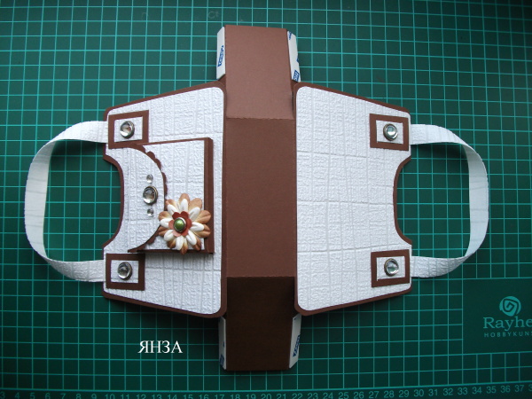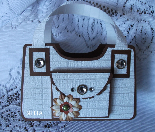 25. Клеим всю конструкцию на коричневую основу сумочки.