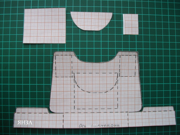 15. Вырезаем белые детали без припусков. Из основного шаблона вырезаем только боковые детали. Вырезаем клапан и карман.