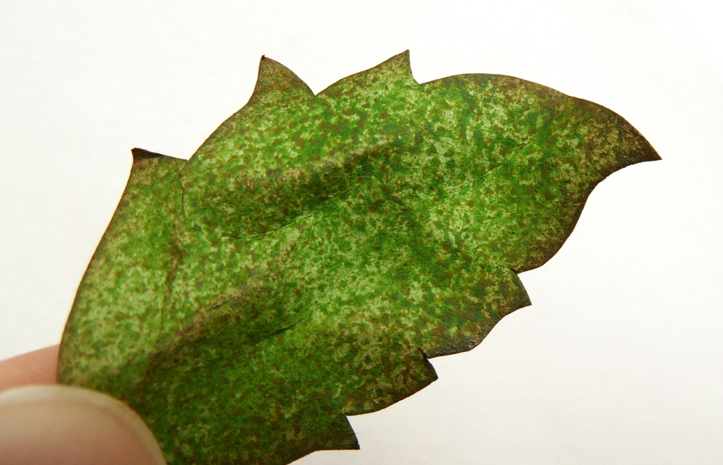 Шаг 8. В местах предполагаемых жилок листочка делаем складки: