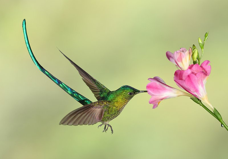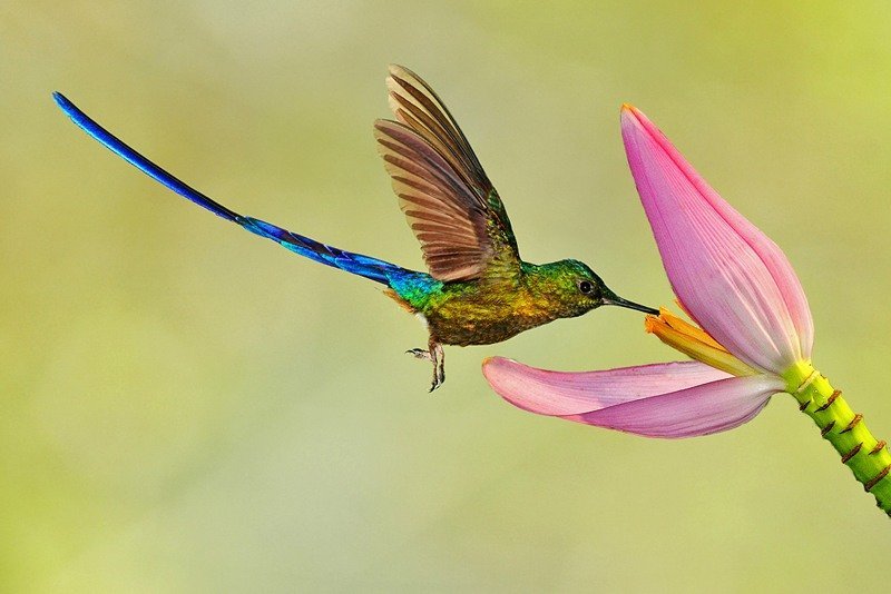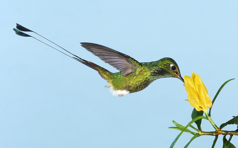 У всех видов семейства колибри форма хвоста и клюва сильно варьирует.