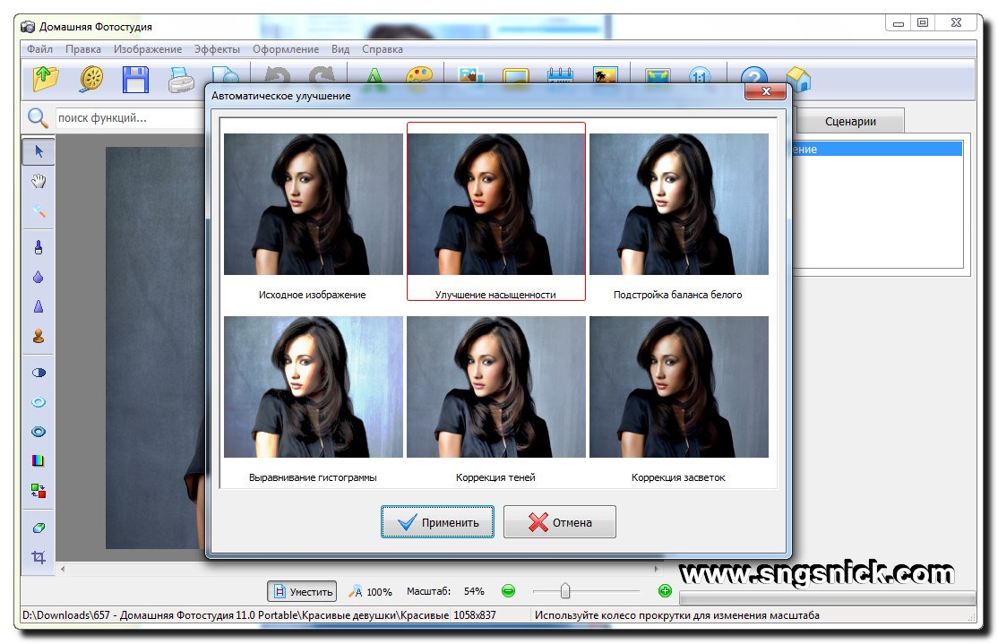 Поскольку мне бы хотелось использовать автоматическое улучшение качества фото, я вызову каталог улучшения.