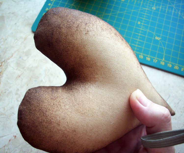 - ну, и собственно, предмет для облагораживания, у меня это вот такое сердце из мешка с недоделками. Пока не придумала ему декор - пусть послужит подопытным "кроликом".