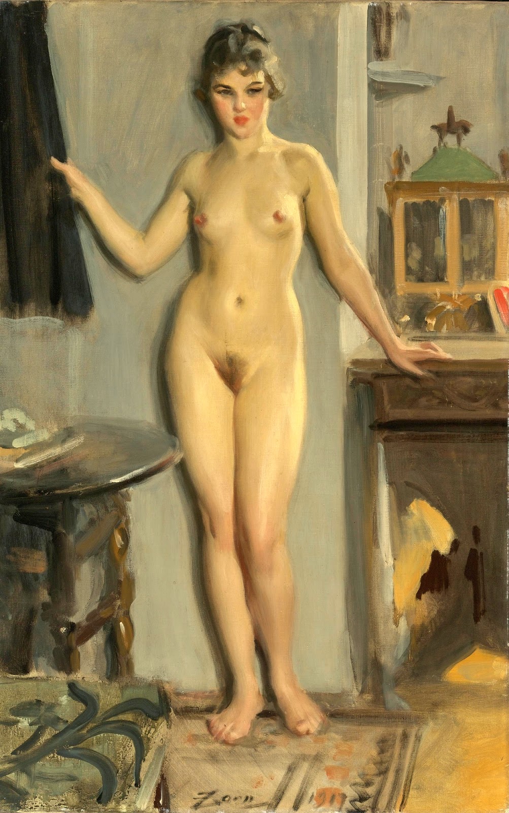 Но уже через несколько лет Цорн становится известен, а потом и знаменит в Стокгольме, а затем и в других странах, в США и особенно России, где он познакомился с Дягилевым, Мамонтовым, Шаляпиным, а Репин назвал его «Паганини живописи». И. Грабарь сказал о нем: «Цорн — какой-то баловень судьбы, которого природа наделила всем, о чем только может мечтать художник». В Петербурге он дал урок написания НЮ в Академии художеств, в этом жанре он писал много и с упоением, его обнаженные женщины прекрасны, жизнерадостны и эротичны.