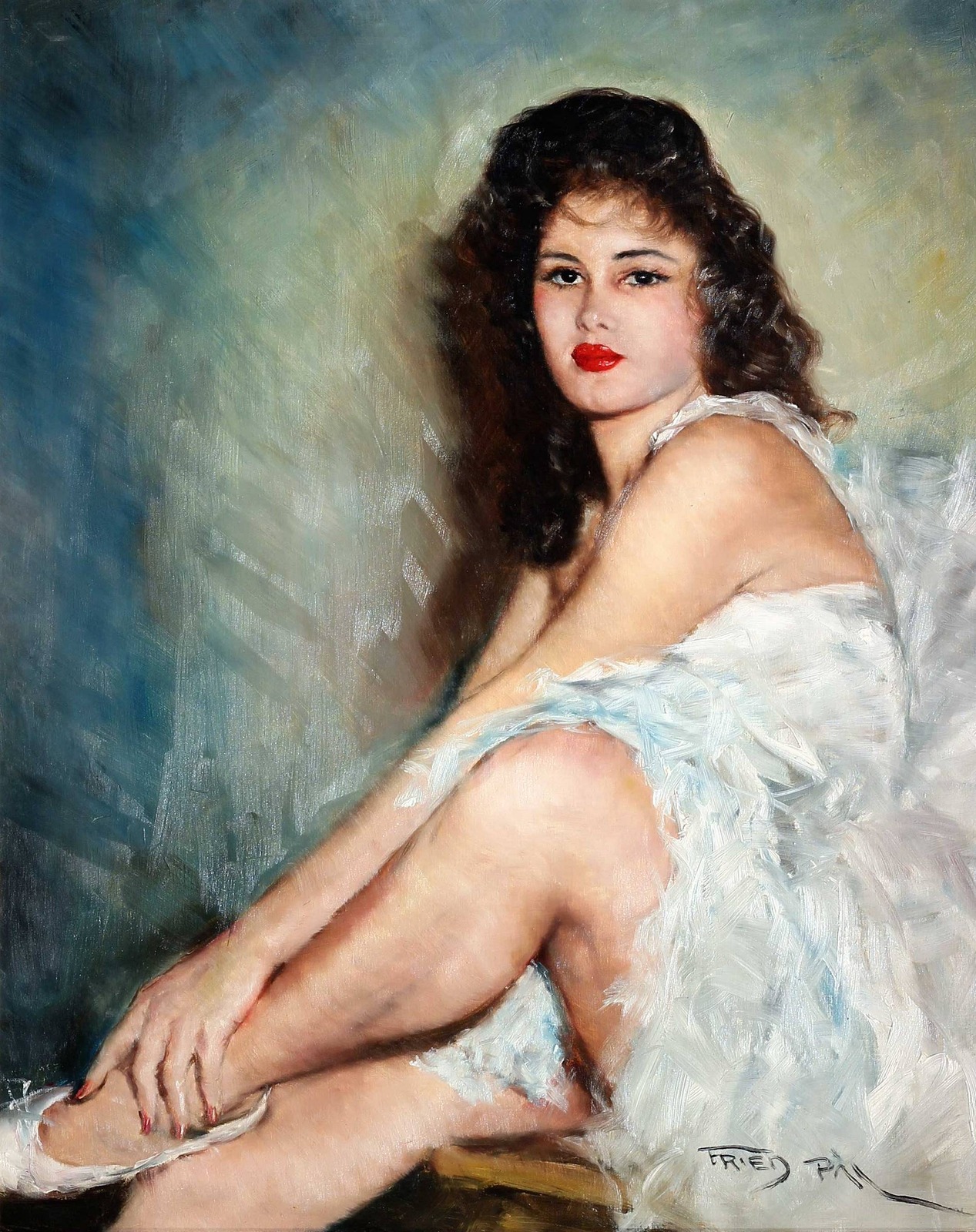 В 1947 году, после Второй мировой войны, Пал Фрид эмигрировал в Америку, где преподавал в Академии искусств в Нью-Йорке и разработал свой собственный уникальный стиль. В 1950-60х гг художник жил и работал в Голливуде, где приобрёл большую популярность как портретист. Он специализировался на портретах дам из высшего общества,
