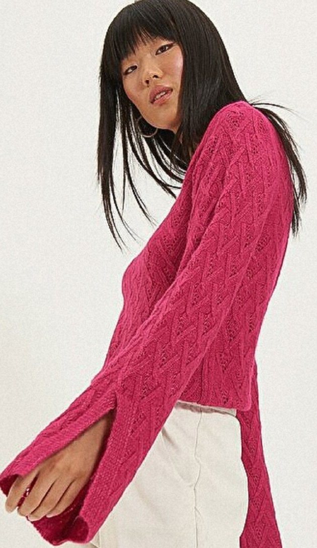 Ажурный узор тоже весьма интересный и ранее на канале еще не встречался. Это сплошной рисунок, состоящий из накидов, симметричных убавлений и переплетений. Стоит заметить, что такой узор подойдет для вязания абсолютно любой вещи.