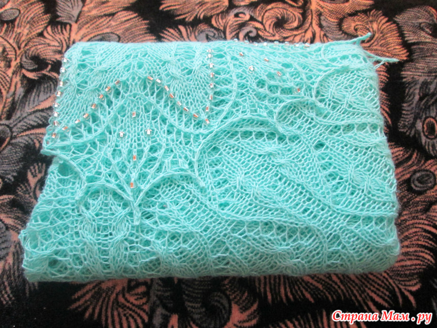 Вязала из Пехорки Элитной, ушло меньше двух клубков, спицы № 3,5, бисер чешский №4 почти пакетик.