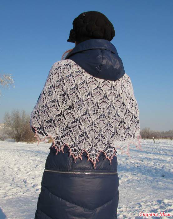 Вот в рамках тестирования у Оли Бочкаревой связалась шалочка "Первая любовь". В описании предлагается два варианта тела и два варианта каймы.