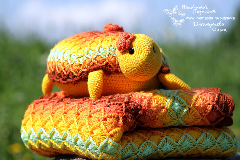 [700x429] Плед и подушка в технике баварского вязания, из полушерстяной пряжи.