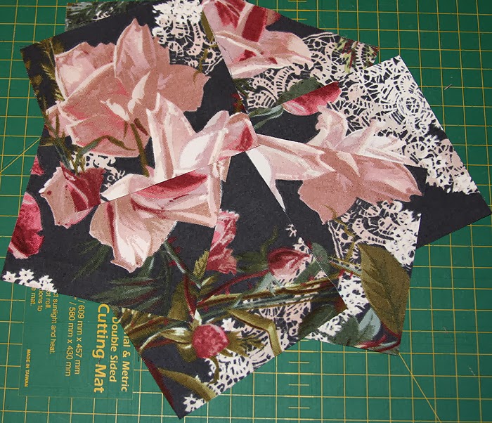 5. В итоге у Вас получатся исходные заготовки – квадраты из трех тканей. Для изготовления одной, например, розовой, подушки нужно: 13 квадратов из розовой ткани, 8 квадратов из ткани с розами и 3 квадрата из голубой ткани. Для голубой подушки ткани фона меняются – 13 квадратов из голубой ткани и 3 квадрата из розовой.