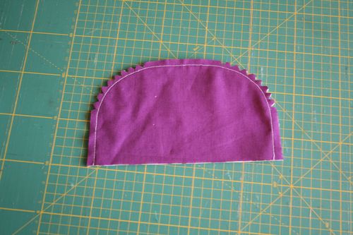 Чтобы после выворачивания ткань в шве не топорщилась, на закруглениях делаем небольшие надрезы и выворачиваем.