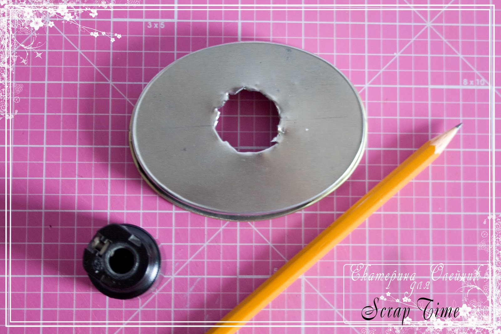 3. Снимаем крышку банки и обводим ее на бумаге. Это будет наша заготовка для "окошка".