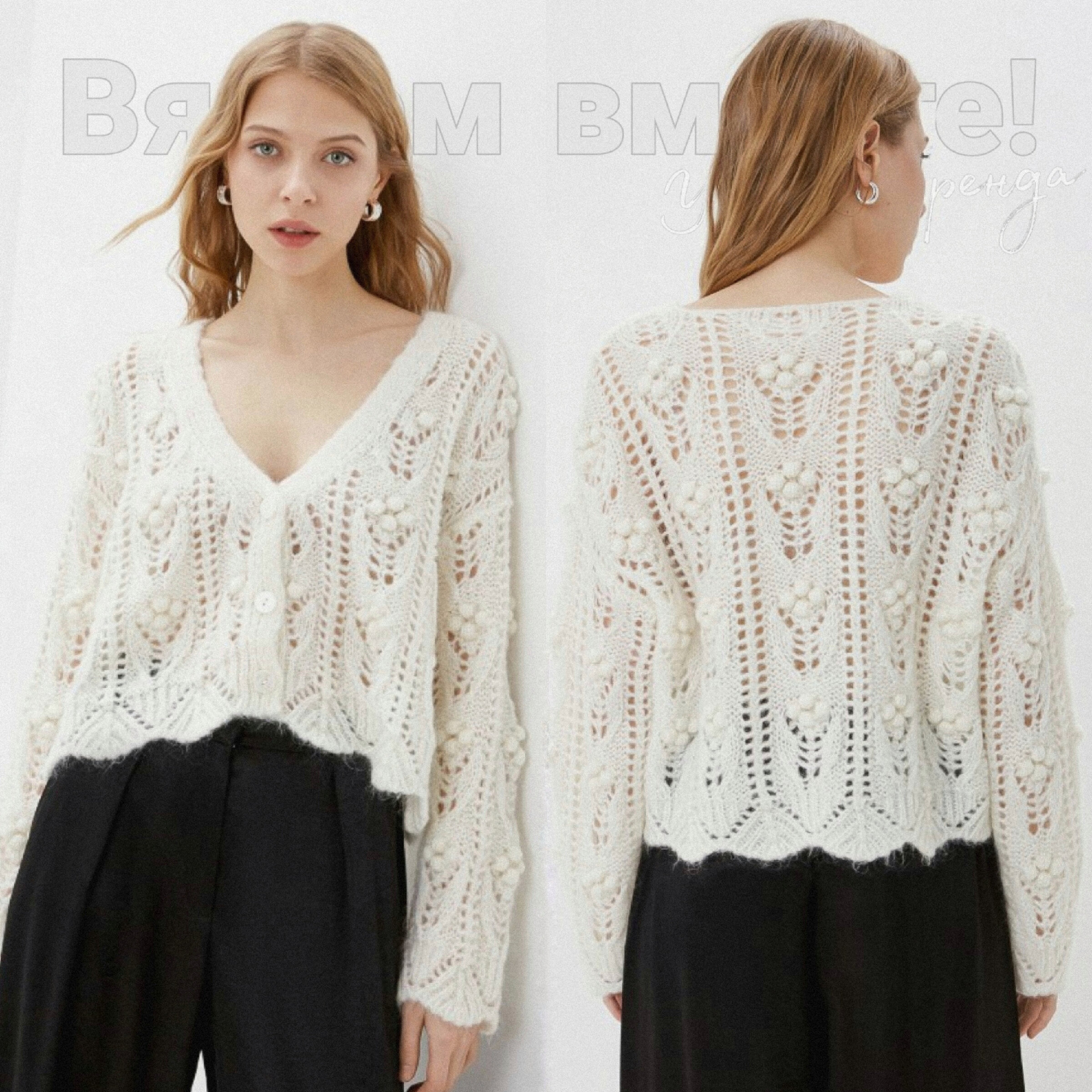 А если не понравился кардиган, то у бренда Контатто уже есть готовый вариант джемпера. Принцип вязания здесь тот же. Единственно отличие состоит лишь в том, что вместо двух полочек вяжется цельная деталь переда с круглым вырезом горловины, который, кстати говоря, отделан всё той же интересной планкой, которым связаны низ и манжеты.