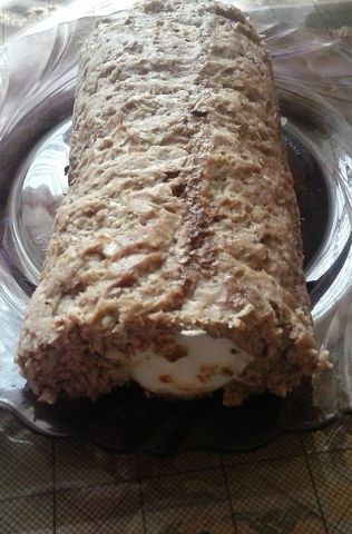 На фольгу выложила слой фарша,на него яйца целые,и сверху закрыла вторым слоем фарша( т.к куриный фарш жидковатый и скатать рулет не получится)и как бы сформировала рулет.Сверху защипнула все фольгой и в духовку на 180 гр на минут 40.Ну у кого какая духовка.потом после готовности раскрыла фольгу,и открытый поставила в духовку подрумяниться.Обед готов)