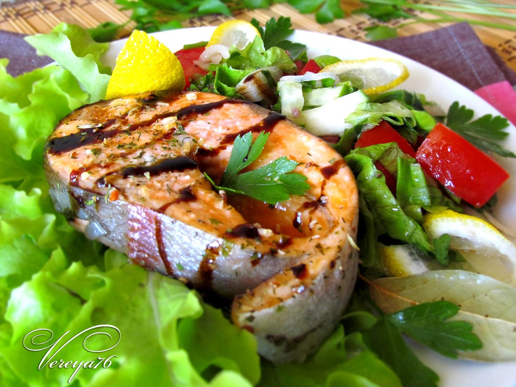 Перед подачей сбрызнуть лимонным соком и бальзамическим соусом.