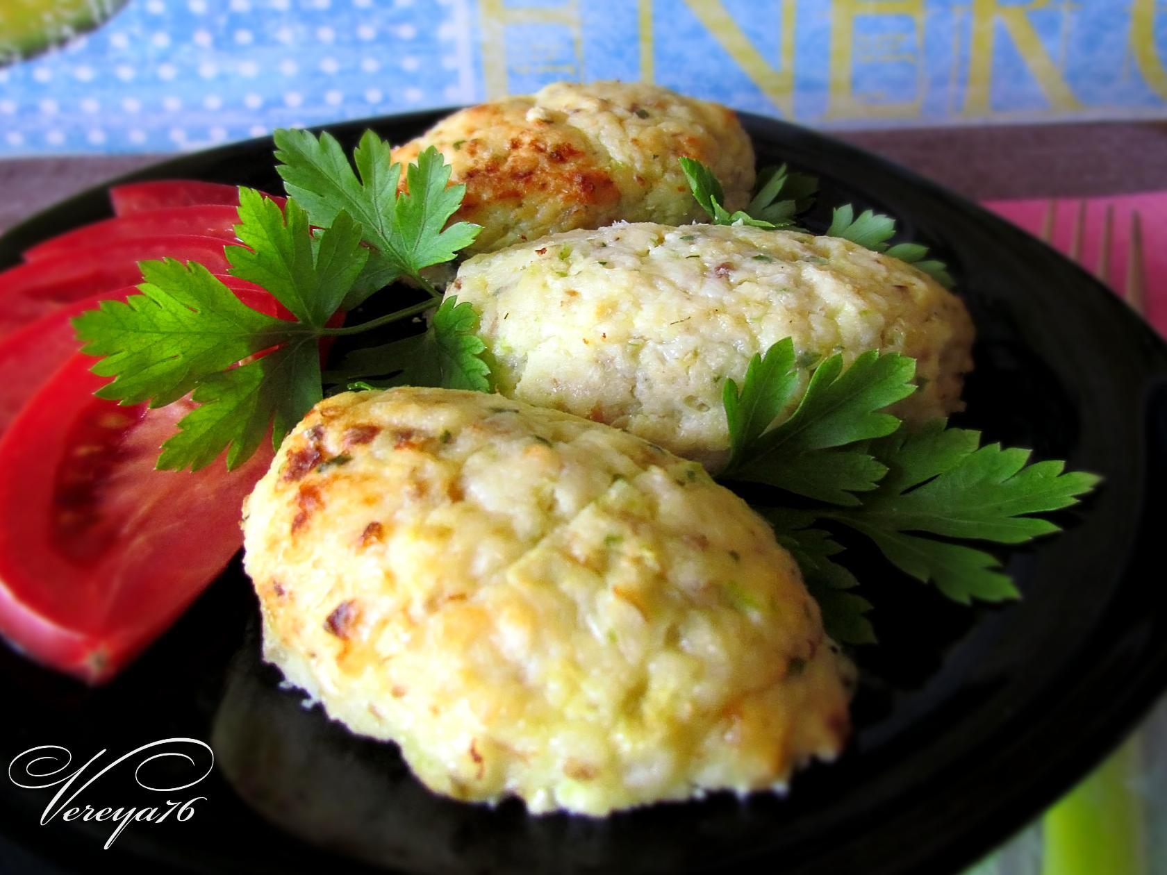 Кабачок разрезать, удалить серединку с семенами. Сделать фарш из рыбы, лука, кабачка. Отжать лишнюю жидкость. Посолить, добавить специи и яйца. Хорошо вымесить фарш. Сформировать котлетки и уложить их на противень, застеленный фольгой. Отправить в разогретую духовку примерно на 25 минут.