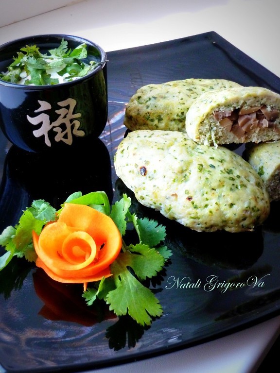 соусом.Затем завернула листьями,получился хорошенький"пирожок".Залила