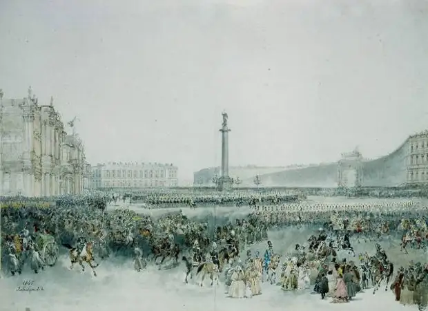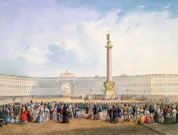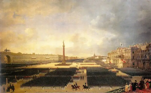 Чернецов Г.Г. Парад по случаю открытия памятника Александру I в Санкт-Петербурге 30 августа 1834 года (1839) (ГТГ)