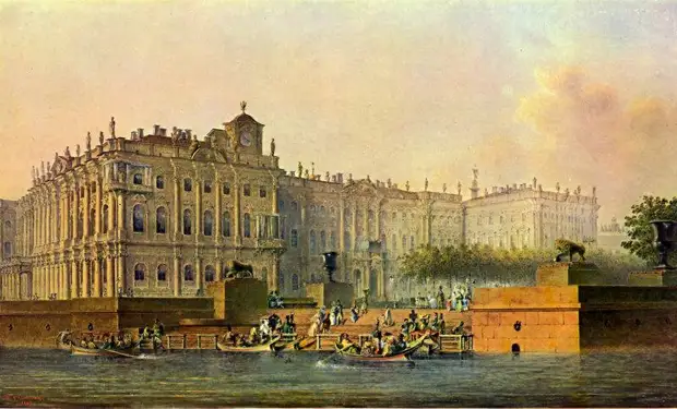 «Вид пристани около Зимнего дворца», Василий Садовников, литография с акварели. 1840.