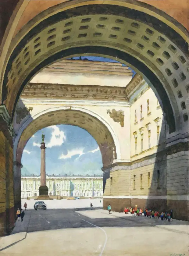 «Ленинград. Арка Революции», 1969. Бумага, акварель, Семёнов Борис Александрович