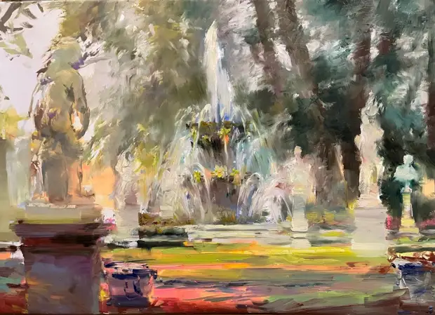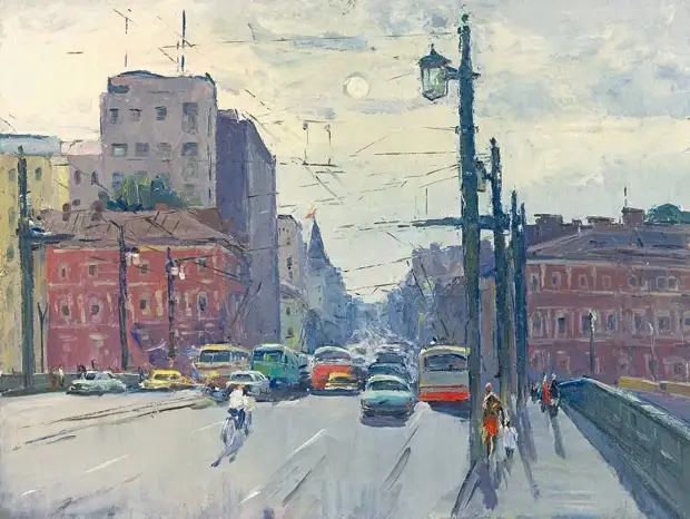 Нанося краску мастихином то короткими, то длинными касаниями, он усложнял рельеф холста, добиваясь эффекта глубины и объёмности изображения. Поэтому в его работах так отчётлива перспектива ленинградских пространств, ясно читаются ближний, средний и дальний планы, почти физически ощущаются дуновение свежего ветерка, движение облаков, трепет листвы.