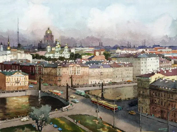 «Утро в Ленинграде», 1970. Бумага, акварель, Семёнов Борис Александрович