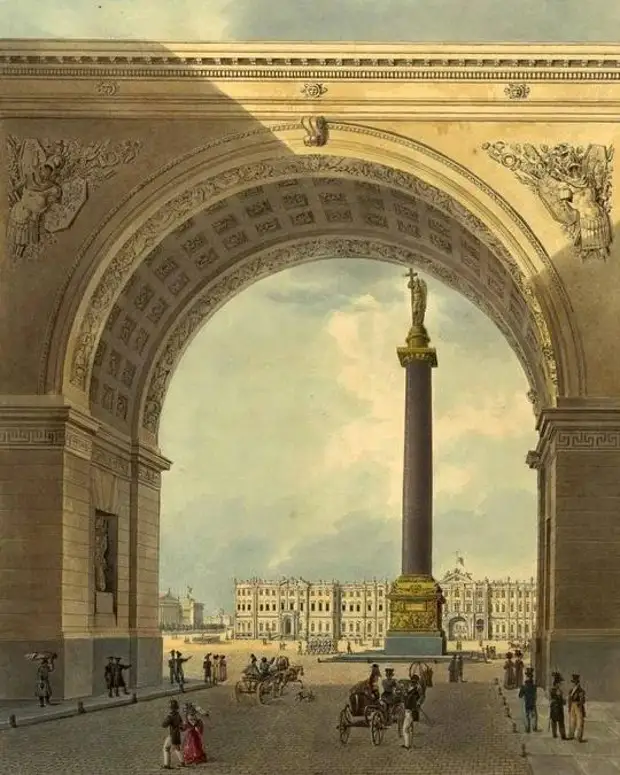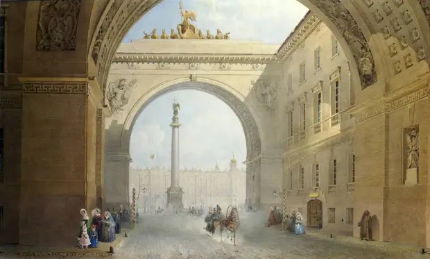 Беггров К.П. Вид арки Главного штаба (1820-1822. Проект). Литография раскрашенная. (ГРМ).