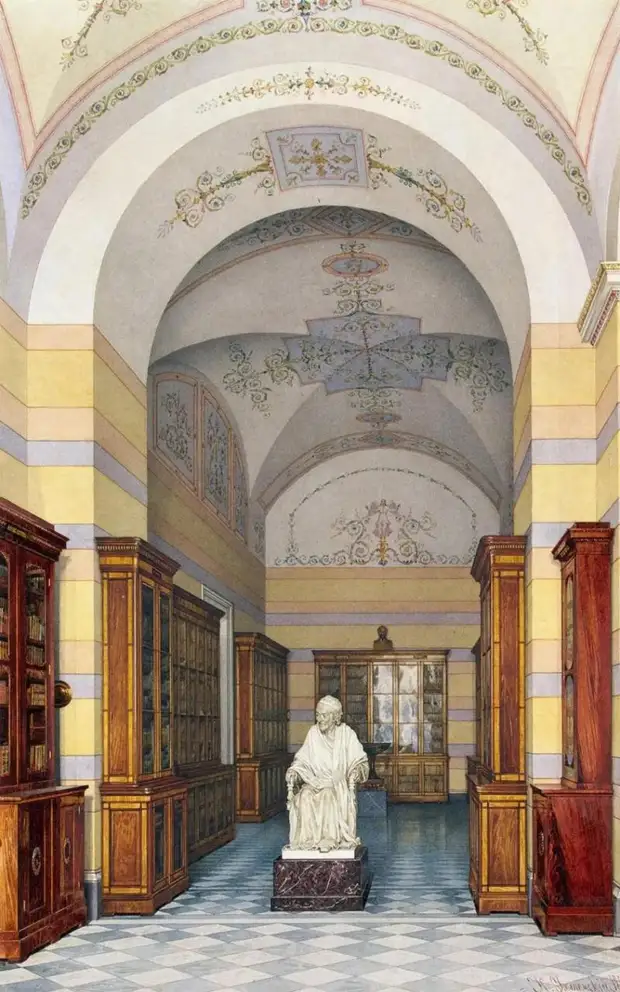 «Библиотека Вольтера», Бумага, акварель, Ухтомский Константин Андреевич, (1818−1881)