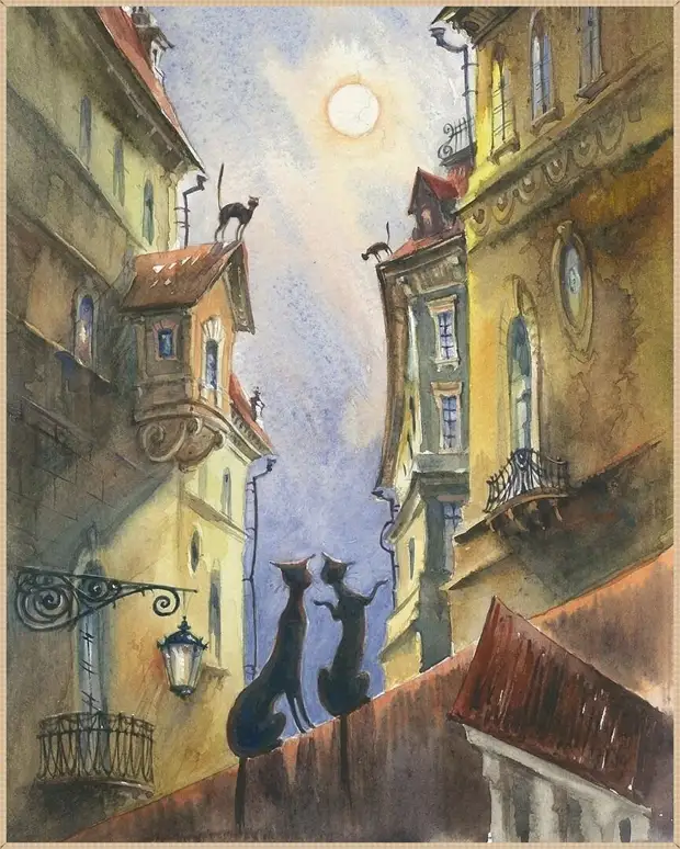 "В вечернем свете фонарей" (художник - Светлана Юрченкова)