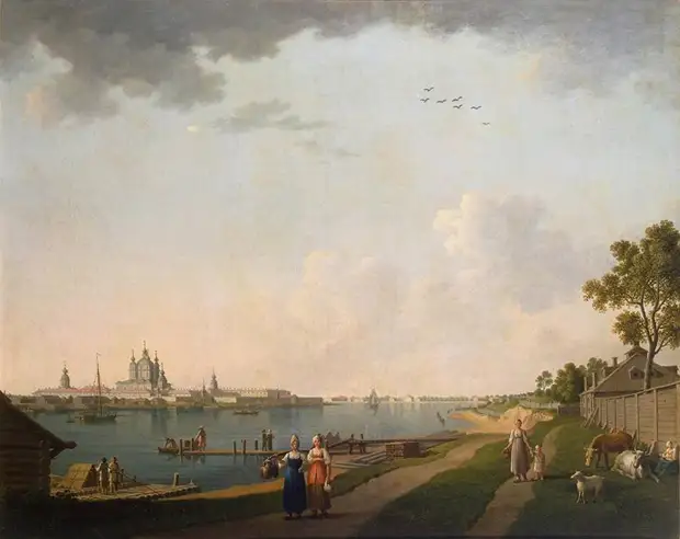 Вид Смольного монастыря со стороны Охты, конец XVIII века. Художник Б. Патерсен. Государственный Эрмитаж.