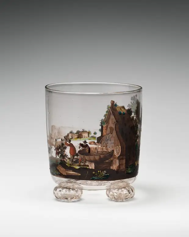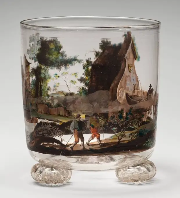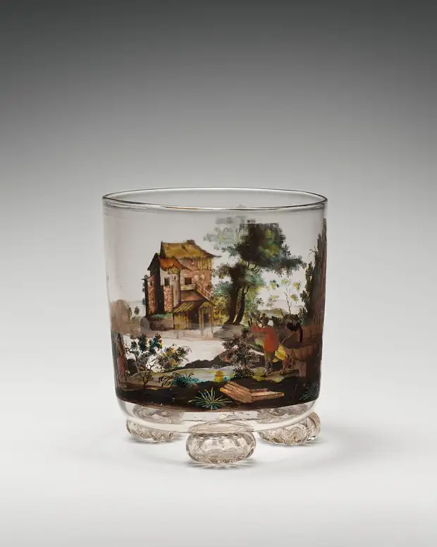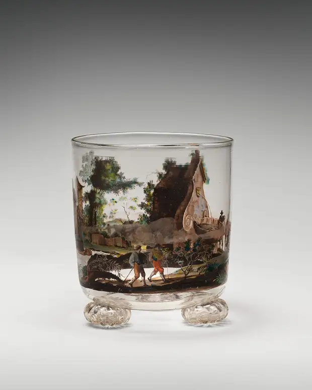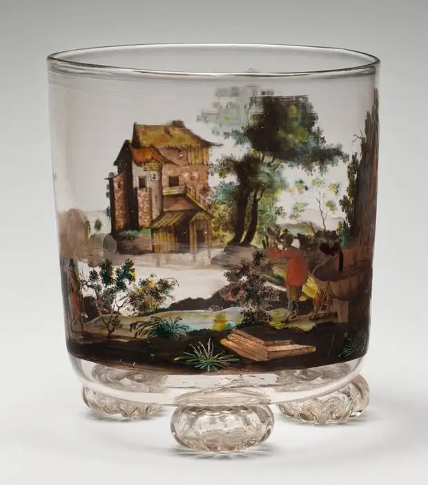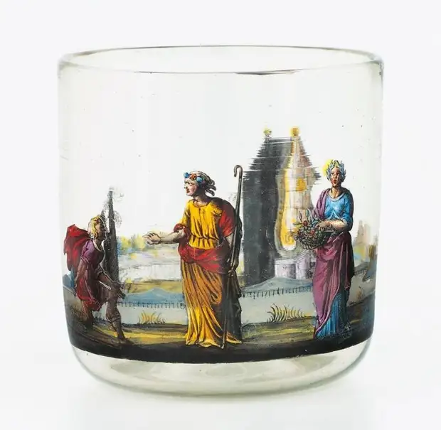 Стакан, расписанный цветной эмалью. Высота – 6,6 см. Художник: Иоганн Шапер. Нюрнберг, 1670 г.
