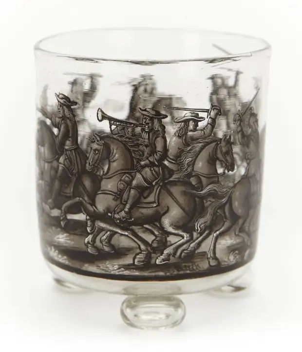 Стакан с росписью шварцлотом. Высота – 7,6 см. Художник: Иоганн Шапер. Нюрнберг, ок. 1655 г.