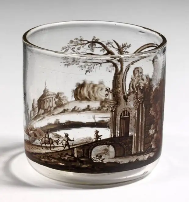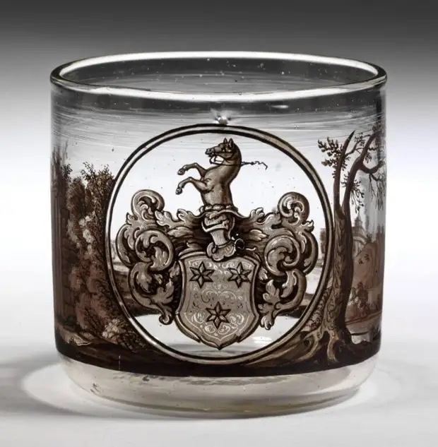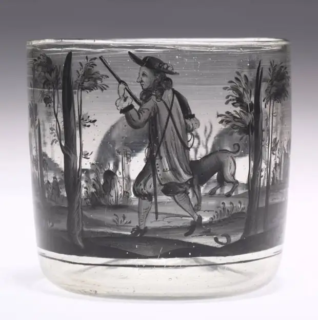 Стакан, расписанный шварцлотом. Приписывается Иоганну Шаперу. Нюрнберг, сер. XVII века