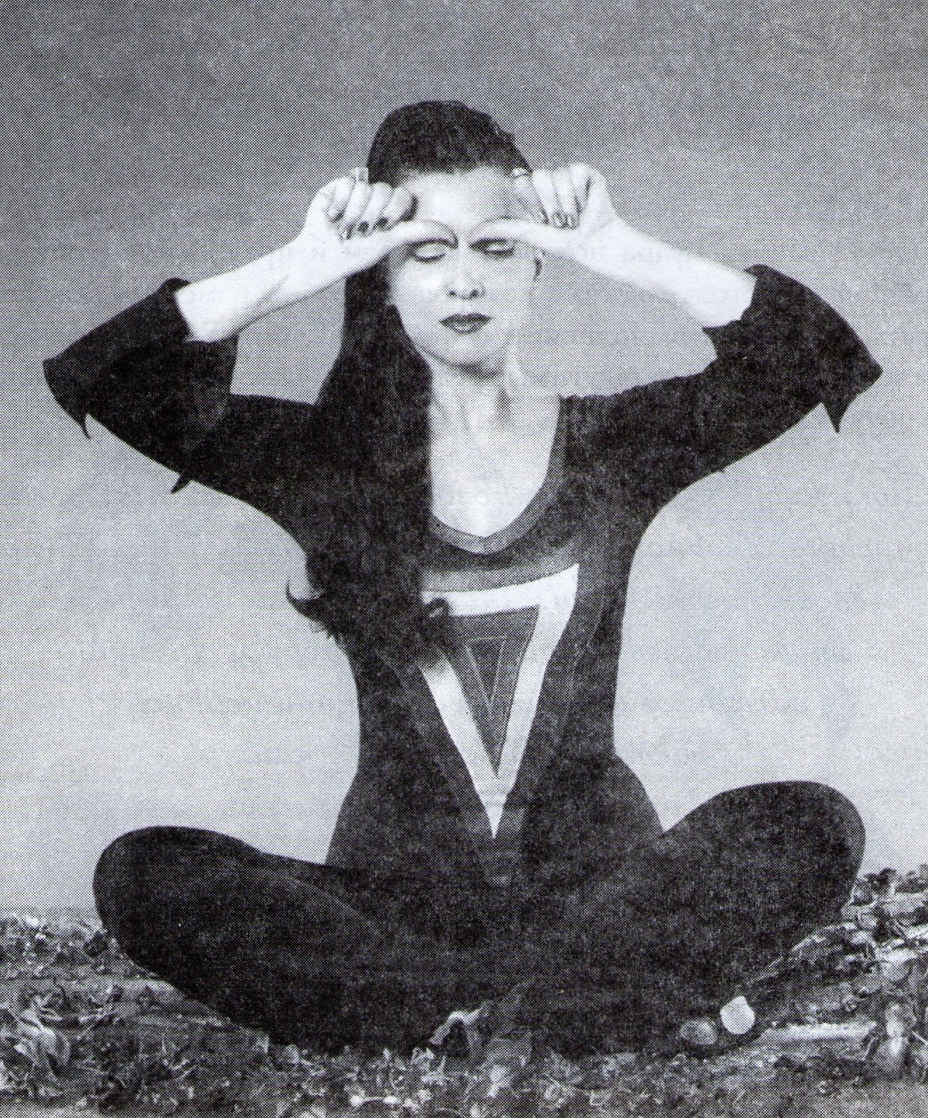 Сядьте, выпрямите позвоночник. Сложите большие и указательные пальцы обеих рук в кольцо; остальные пальцы направлены вверх и вытянуты. Соедините кисти рук над пупком так, чтобы вытянутые вверх пальцы обеих рук касались друг друга тыльной стороной. Закройте глаза и сосредоточьтесь на области «третьего глаза». дыхание – медленное и глубокое. Остановите поток мыслей и сконцентрируйтесь на каком-нибудь утверждении, например: «Я есть вечный свет мира».