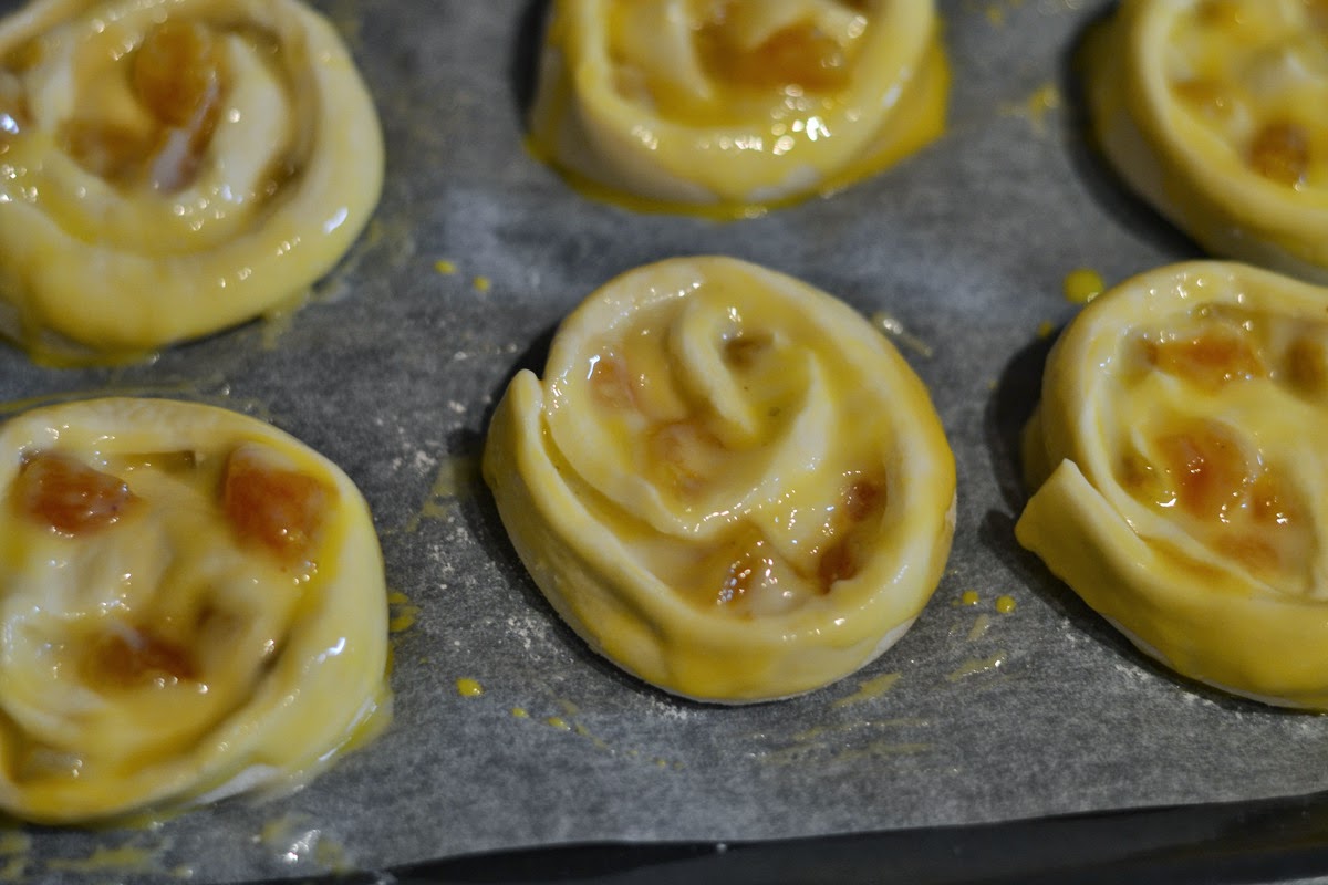 Эти булочки очень популярные, так как готовятся очень быстро и подаются в основном на завтрак. В рецепте предлагается в булочки добавлять изюм, у меня изюма не было, поэтому я добавила курагу, хотя можно и клюкву, и орехи, будет думаю, тоже очень вкусно.