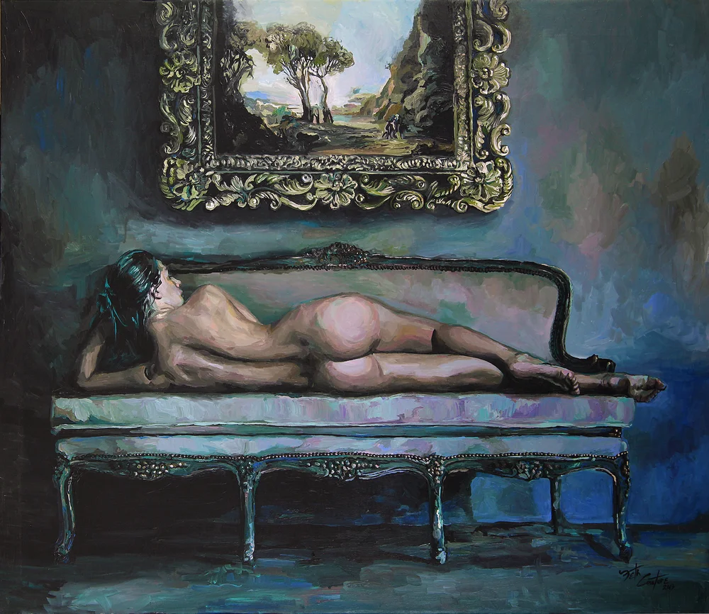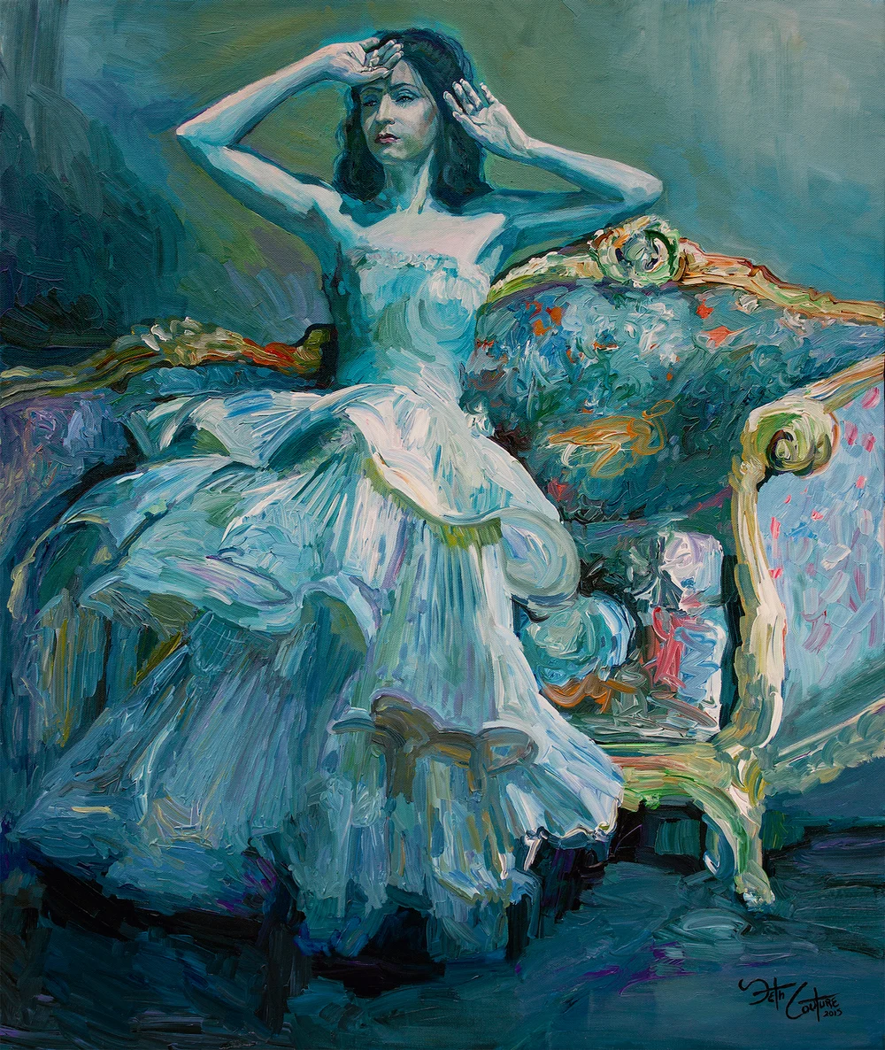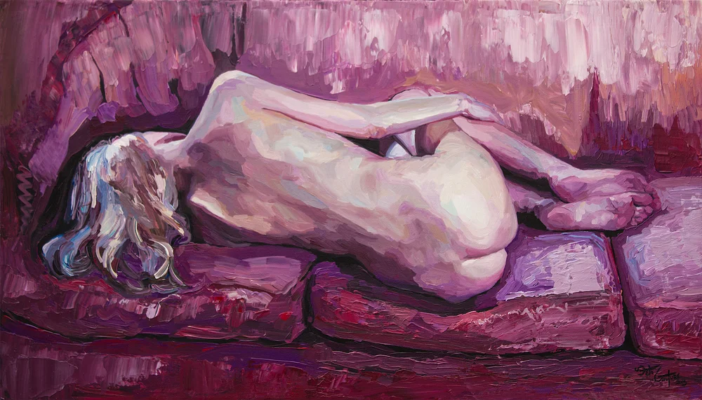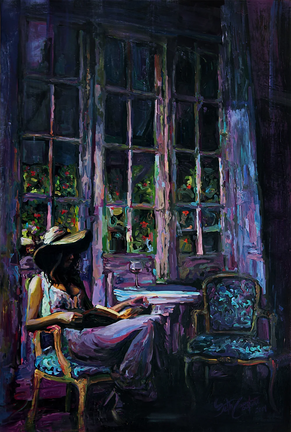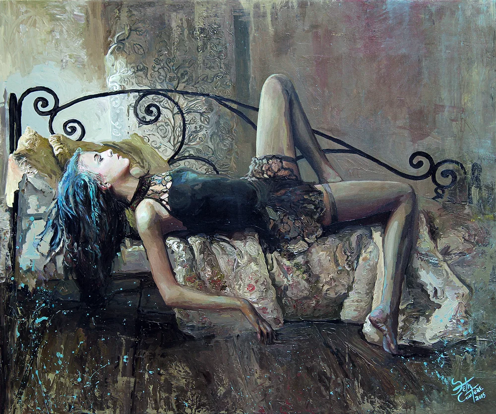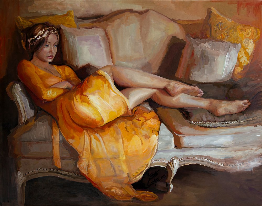 Мои работы это перевод эмоционального состояния человека в визуальную форму с использованием смелых движений, гармонии и прохладных, атмосферных цветов. Я изображаю фигуры и предметы, пойманные в определённое мгновение, чтобы представить вам «снимок спонтанного выражения чувств и эмоций», который рассказывает историю. История, рожденная в моем сердце и разуме, созревает с каждым мазком моей кисти, чтобы полностью выразить мою любовь к работе.Центральной темой большей части моей работы, чаще всего, является, женская фигура, потому что я чувствую, что интенсивная меланхоличная красота лучше всего выражается в женской форме и фигуре. Первичное чувство лучше всего дополняется грацией, гармонией и силой через напряжённые позы, обстановку, выражения лиц и атмосферу