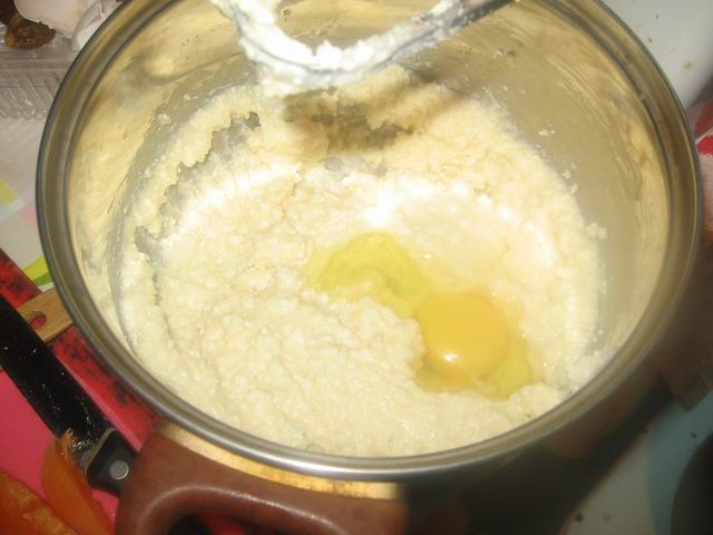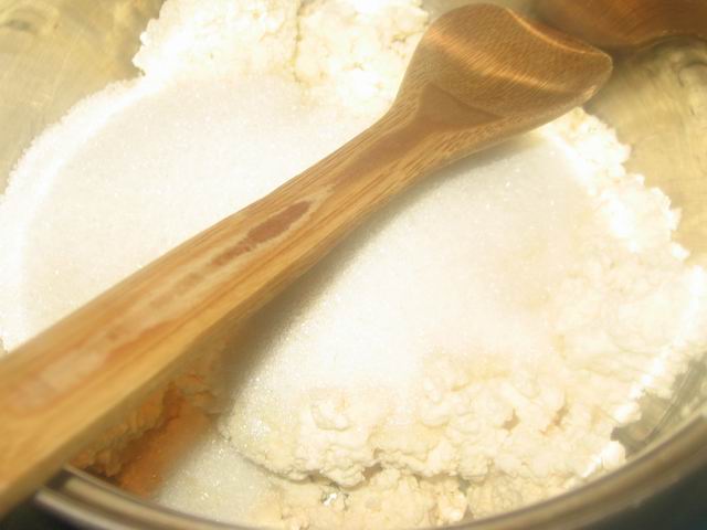 Творог перетрём с сахаром, лучше конечно протереть его сквозь сито, но сегодня не было на это времени.