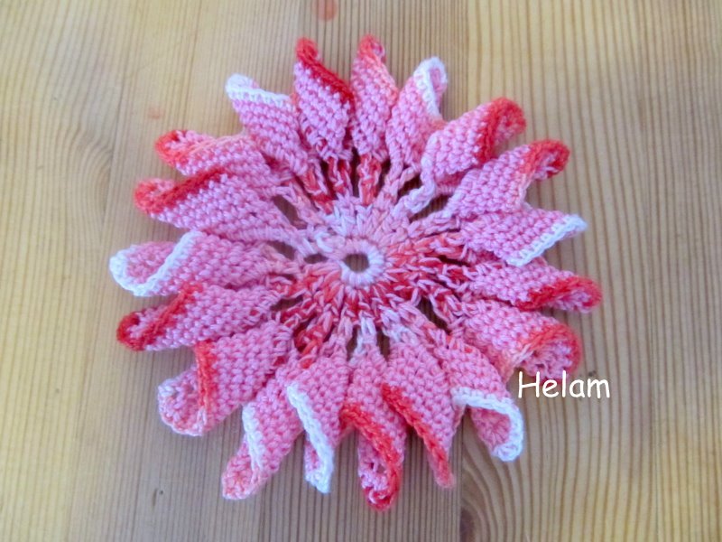 Если вы хотите более нежный цветок, то лепестки вязать в 4-9 рядах ст. с/н вместо ст. б/н.