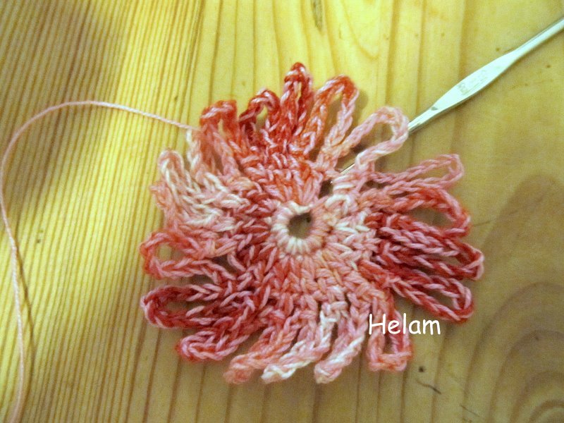 3-ий ряд. *12 возд. п., ст. б/н* в каждый столбик предыдущего ряда ( 20 лепестков).