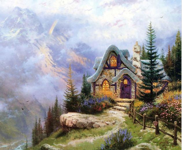 Вот что сообщает о жизни и творчестве Кинкейда Википедия: «Томас Кинкейд (англ. Thomas Kinkade; 18 января 1958, Калифорния — 6 апреля 2012, Калифорния) — американский художник, отличался массовым распространением печатных репродукций своих работ, в том числе на паззлах. Он характеризовал себя как «Томас Кинкейд, Художник Света» и даже зарегистрировал фразу «Художник Света» как торговую марку (хотя первым так назвали английского художника Уильяма Тернера – за два века до Кинкейда). Кинкейд также известен как «самый коллекционируемый художник Америки». Компания Media Arts, распространяющая его продукцию, заявляет, что в 1 из 20 домов США в той или иной форме есть одно из изображений, выполненное Кинкейдом. Ежегодная суммарная выручка от продаж работ Кинкейда и продукции с созданными им изображениями оценивается в 100 миллионов долларов».