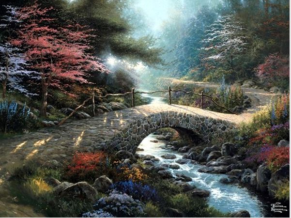 Что меня всегда поражало в творчестве Кинкейда, так это его плодотворность. Он рисовал столько картин, что во мне иногда зарождались подозрения по поводу того, кем они производятся. Известно, что некоторые плодовитые писатели прибегают к услугам так называемых «литературных рабов», то есть низкооплачиваемых, но одаренных студентов или начинающих писателей, которые собственно и пишут произведение по сюжетной схеме созданной автором. Метод Кинкейда был именно таким: он характеризовался как «полу-индустриальный процесс», в котором ученики наносят краски на основу, подготовленную Кинкейдом. При всем уважении к художнику, искусством такой конвейер назвать уже нельзя. Результат получается красивым, но души в нем не чувствуется, потому что ее там нет.