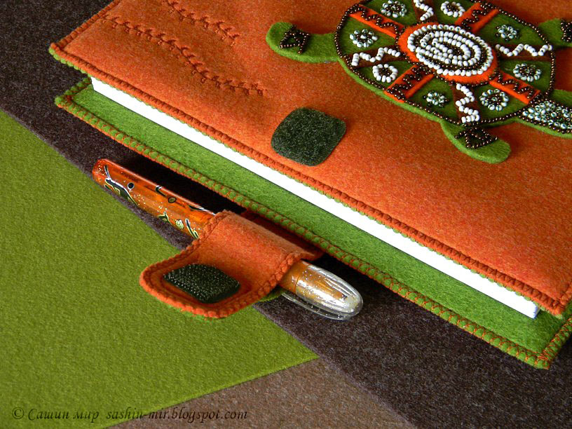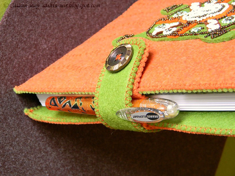 Про застежку - полоска фетра двойная и между ними вкладывается ручка.
