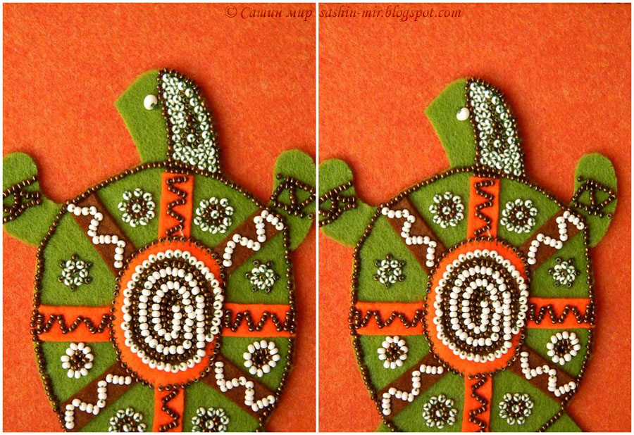 Бусину - глаз можно повернуть и тогда меняется направление взгляда черепуги.
