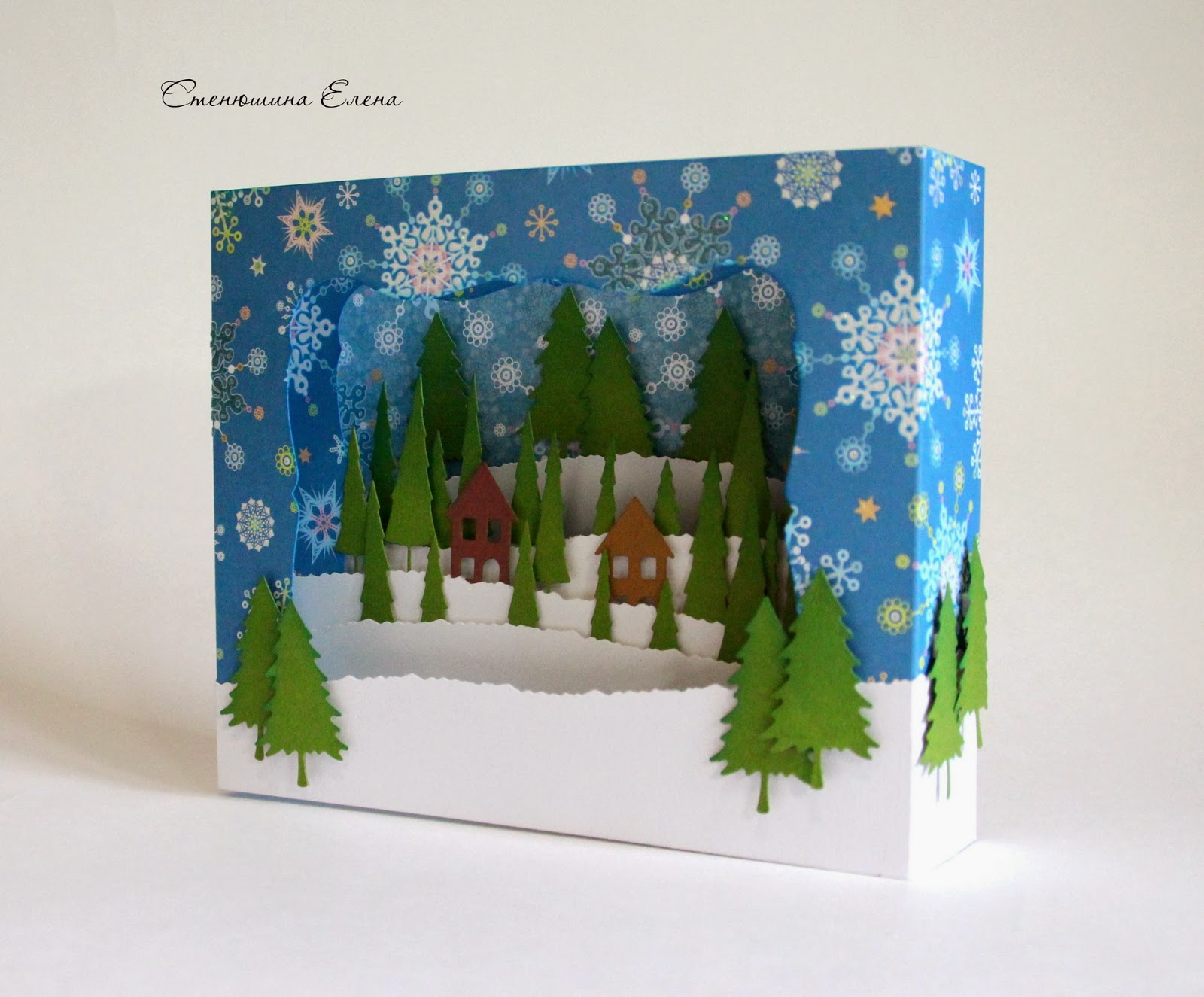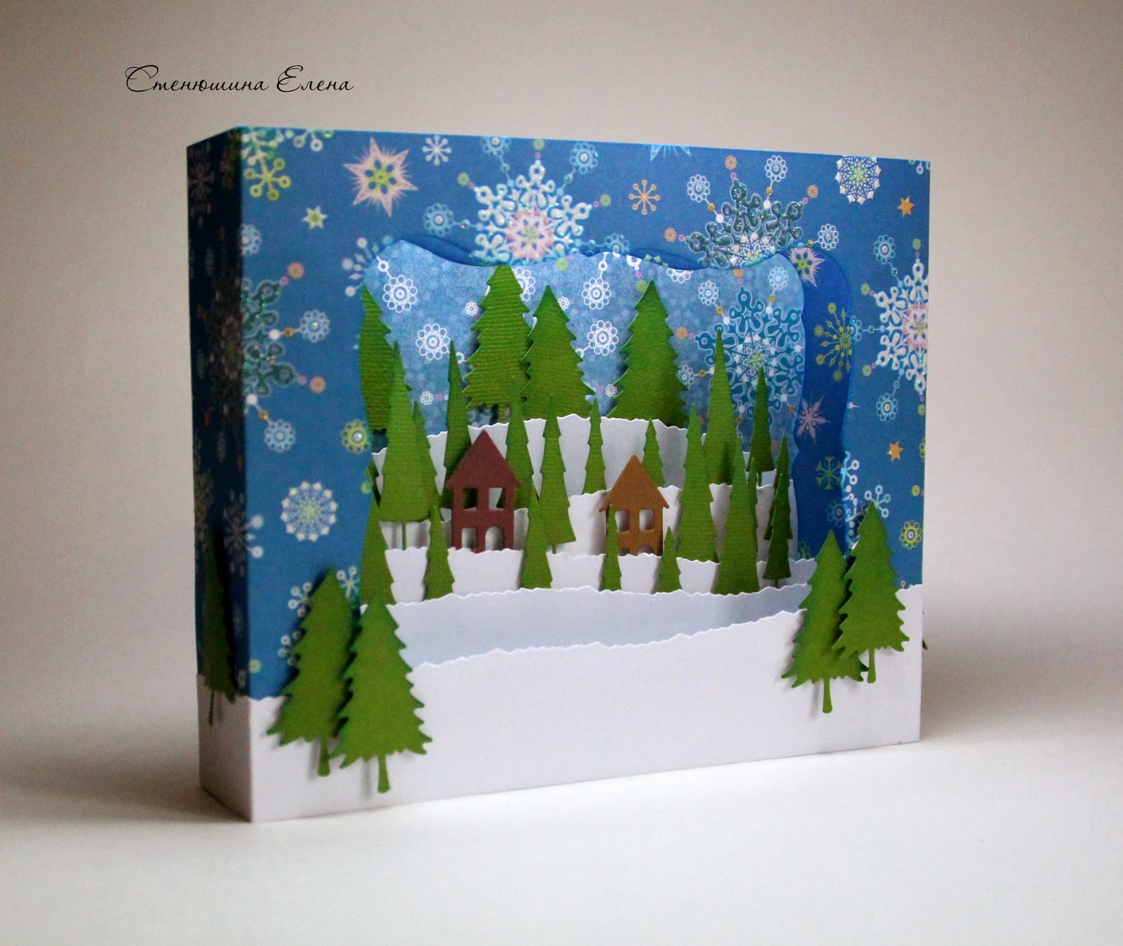 Мне всегда нравились открытки сложной формы, с 3D эффектом. Попробовала сделать открытку-диораму.
