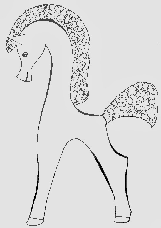 Каркас будет проходить только внутри головки, тела и ножек. Хвост и грива будут добавлены отдельно и о них пойдет отдельный разговор.